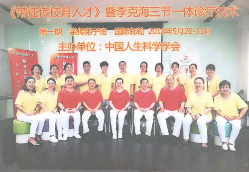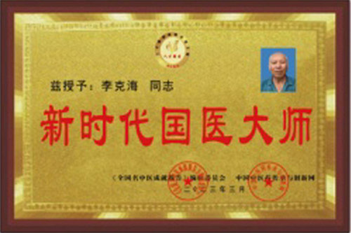 2018年被教育部中国人生科学学会遴选专家,评审委员会高度评价:“李克海新诊疗法,独家创始技术,民间瑰宝”并命名:“李克海三节一体诊疗技术”为《带徒传技育人才》亲传弟子培训班讲学。