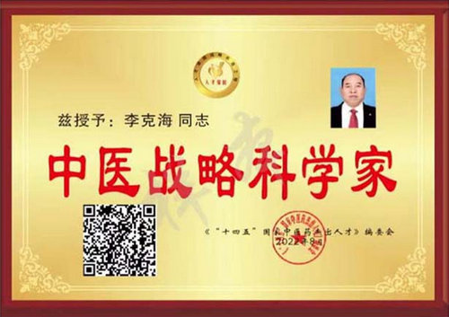 2022年2月18日,《“十四五”国家中医药杰出人才》编委会等单位联合多家中央主流媒体共同举办“中医战略科学家”评选活动,李克海被评选为“中医战略科学家”与屠呦呦、张伯礼、李佃贵、唐祖宣、石学敏等中医药杰出人才“中医战略科学家”荣誉称号并论。