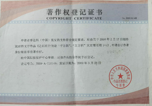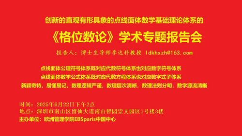 如是说:浩瀚的海洋中有朵最美丽的浪花,李达科就是最美丽的那一朵;如是说:碧蓝的天空中有一朵最美丽的云彩,李达科就是最美丽的那一朵;如是说:数学海洋中有最一条美丽的代数方程,李达科老师用格位数论推导的就是最美丽的那一条代数方程。