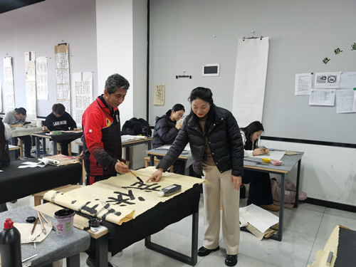 秘鲁武术家协会本加明先生,一起研习书法